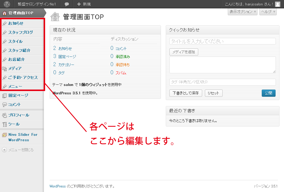 各ページの編集や追加するには①
