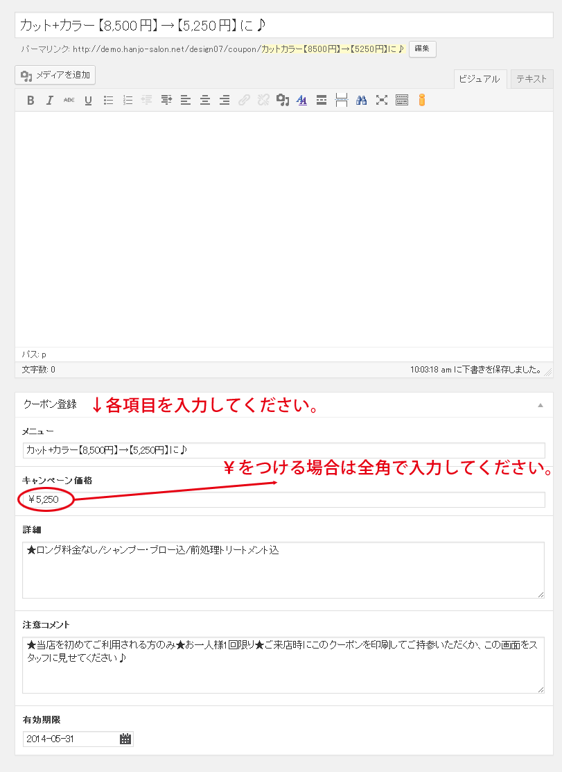 後はいつもどおり必要な項目を入力するだけの簡単な内容です。