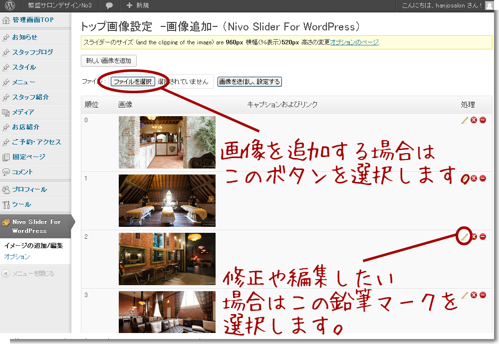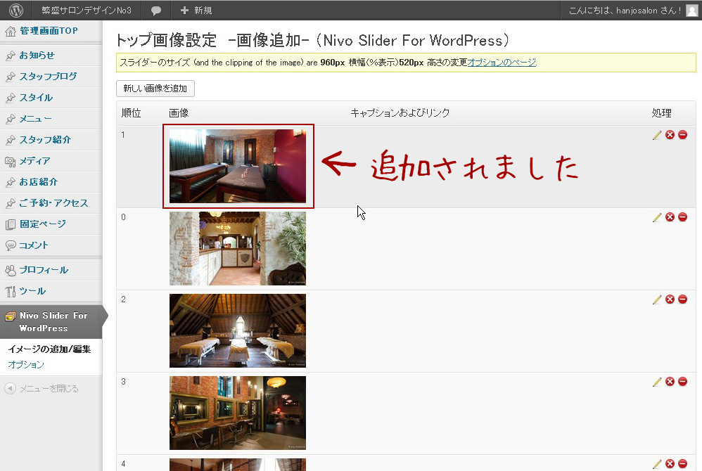 あとはブログなどと同じ容量で画像をアップしていきます。